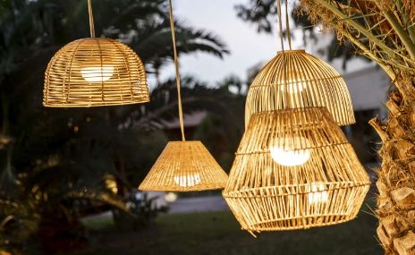 Lielās salas un Bora Bora brīvdienu burvību mēs ienesam savās dzīvojamās istabās ar salu stila gaismām, kas izgatavotas no bambusa, palmu un banānu augu šķiedrām - ideāla kombinācija, lai sapņotu simbiozē ar zaļajiem augiem. Padoms: Vasaras mēnešos mēs arī savos dārzos radām Vidusjūras klejojumu stila gaismu - ar pītiem lukturiem no dabīgām šķiedrām, rotangpalmas un citiem materiāliem. Īpaši ievērības cienīgi: daudzi no piedāvātajiem gaismas ķermeņiem ir izgatavoti ar rokām no dabīgiem, atjaunojamiem materiāliem, tāpēc tie ir unikāli.