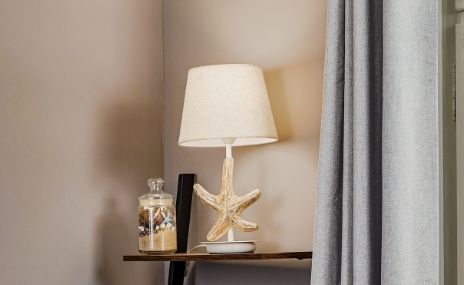 Jūras pludmales mājas noskaņa jūsu mājās padarīs jūsu vasaras brīvdienas vēl ilgākas. Piekrastes tendence parasti ietver tādus materiālus kā finierkoks, tekstils, audekls un gliemežvāki. Tās nomierinošo efektu nodrošina arī daudzie gaiši krēmkrāsas toņi, kas apvienoti ar visiem zilajiem toņiem. Silta balta gaisma, kas garantē patīkamus sapņus!