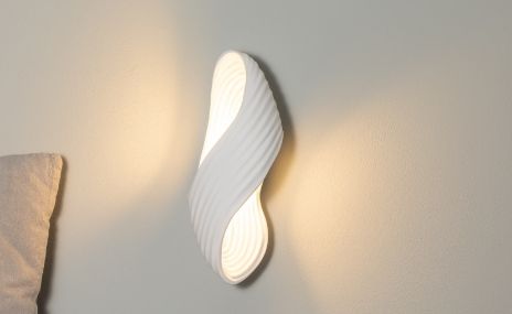 Dizains, kas paliek atmiņā - pārsteidzoši plūstošs un dinamisks: sienas lampas, kuru dizains veidots pēc dabas parauga, harmoniski raksturo mūsu interjeru. Pateicoties caurspīdīgajiem, radoši izliektajiem materiāliem, mēs īpaši izbaudām gaismas spēli ar silti baltu gaismu uz sienas.
