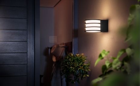 Inteliģenta gaisma ap mājuPerfekta noskaņa ar vienu pirksta pieskārienu: Philips Hue āra sienas lampas nodrošina gudru, individuāli regulējamu apgaismojumu visā mājā - gan ieejas zonā, gan uz fasādes, gan uz balkona. Tie pielāgojas jebkurai situācijai, izmantojot lietotni vai balss komandu, un apvieno dizainu ar funkciju. Kā daļa no Hue āra apgaismojuma tie apsedz terasi un dārzu ar atmosfērisku gaismu, rada mājīgu atmosfēru un aicina uzkavēties - neatkarīgi no tā, vai pavadāt laiku kopā ar ģimeni, atpūšaties vai vienkārši atgriežaties mājās.