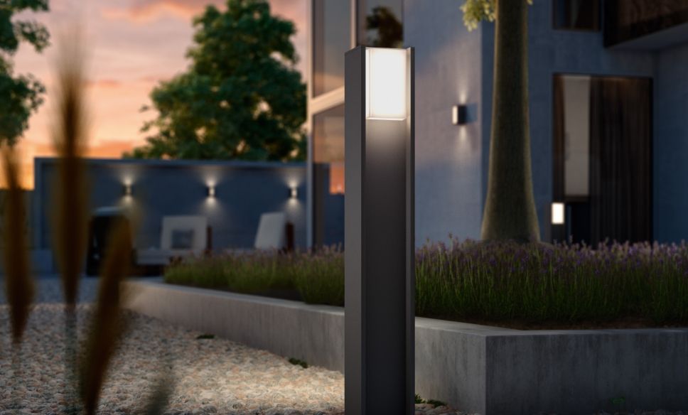 Apgaismes dizains ar komfortu un raksturuAr Philips Hue celiņu un cokola apgaismojumu āra apgaismojums kļūst par pieredzi: celiņus, piebraucamos ceļus un dārza zonas var intuitīvi kontrolēt, plānot un elastīgi aptumšot. Iespējams arī grupēt vairākus gaismas ķermeņus kopā - tas ir ideāli piemērots pastāvīga apgaismojuma koncepcijām vai sezonas akcentiem.
