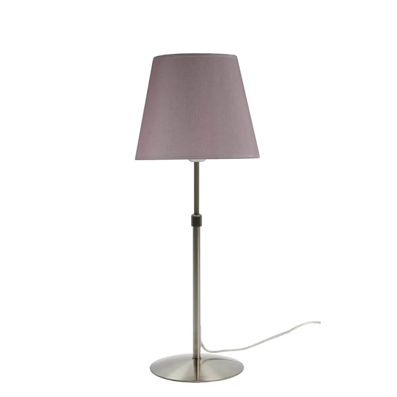 Ērti regulējama Store galda lampa ar auduma abažūru Store galda lampai ar metāla rāmi un auduma abažūru ir vienkāršs un elegants izskats. Pateicoties tās puristiskajam dizainam, to var saskaņot ar daudziem interjera stiliem. Neatkarīgi no tā, vai tā atrodas dzīvojamā istabā uz kumodes, uz sānu galdiņa blakus krēslam vai guļamistabā uz naktsskapīša - Store nodrošina mājīgu papildu apgaismojumu jebkurā vietā. Store galda lampas augstumu var ērti regulēt no 47 cm līdz maksimālajam 59,5 cm augstumam. Ieslēgšanas/izslēgšanas slēdzis ir iebūvēts padeves kabelī.