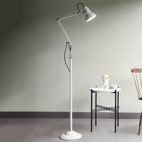 Oriģinālais 1227 LED stāvlampa: mobils gaismas avots dzīves un darba telpām 2012. gadā Anglepoise® gaismekļu klāsts tika papildināts ar šo stāvlampu, kas augšā atgādina Anglepoise® galda lampu. Atšķirība ir tā, ka gaismekļa elastīgā daļa ar šarnīrveida gaismekļa roku ar pastāvīgu atsperu mehānismu ir papildināta ar taisnu gaismekļa rāmi, padarot to līdzīgāku parastai stāvlampai. Tomēr tas tā ir tikai vizuāli; funkcionālā ziņā Anglepoise® saglabā savu lielisko elastību un līdzsvaru. Anglepoise® oriģinālo dizainu radīja angļu rūpnieciskais dizainers Džordžs Karvardīns (George Carwardine), kurš 1930. gadā savas zināšanas par automobiļu dizainu, kur viņš bija atbildīgs par amortizatoru izstrādi, pārnesa uz darba lampas izstrādi. Anglepoise® darba lampa bija aprīkota ar īpašām atsperēm, kas imitēja cilvēka rokas kustības - aprīkota ar E27 ligzdu - ieskaitot spuldzi - Spuldzes svaram jābūt no 25 līdz 60 g, lai neapdraudētu līdzsvaru.