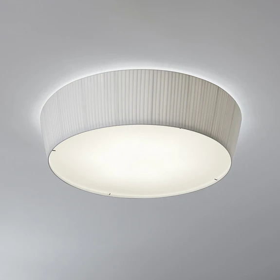 Plafonet LED griestu gaisma dzīvojamām un ēdamistabas telpām Plafonet LED griestu gaisma apvieno elegantu dizainu un funkcionālu apgaismojumu, radot gan iedvesmojošu, gan nomierinošu gaisotni. Pateicoties iebūvētajam LED gaismas avotam, šis griestu gaismeklis ir energoefektīvs risinājums, kas ir lieliski piemērots lietošanai dzīvojamās telpās un ēdamistabās. Tās izsmalcinātais dizains ar lielo stikla izkliedētāju, kas ierāmēts ar auduma lentveida abažūru, nevainojami iederas mūsdienīgā interjera stilā un izceļ telpas estētisko komponentu - ārēji dimmējams