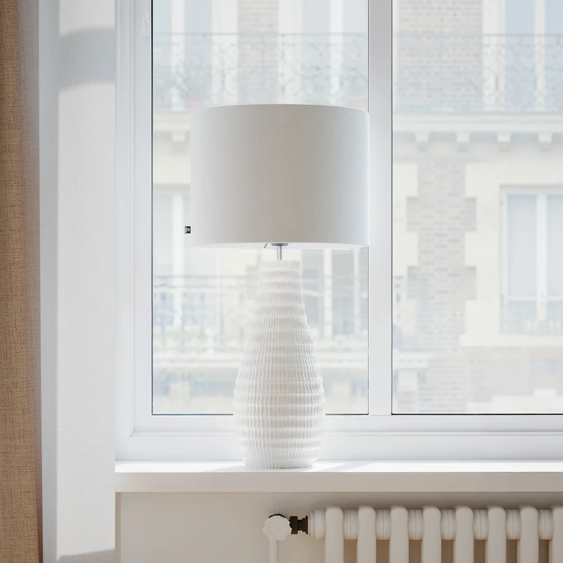 Galda lampa Bartha apvieno augstas kvalitātes materiālus, piemēram, keramiku un kokvilnu, harmoniskā dizainā. Šī lampa nevainojami iederas dažādās dzīvojamās telpās, piemēram, viesistabā vai guļamistabā, un piešķir tām stilīgu akcentu.