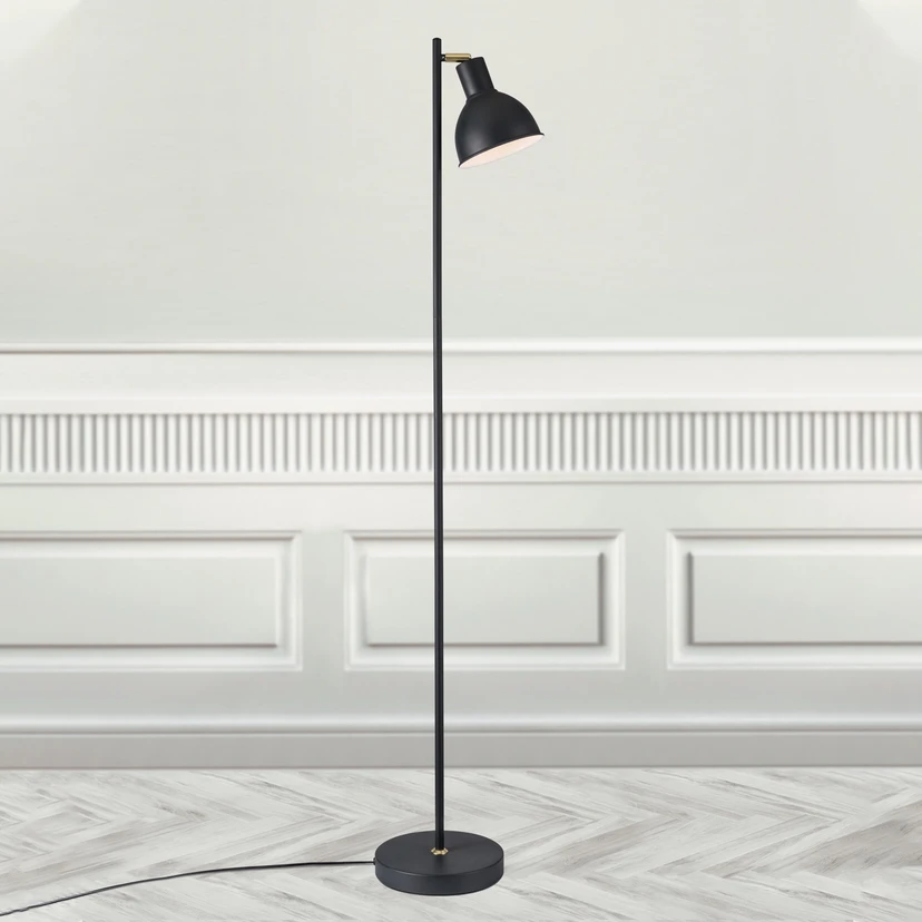 Smalkā Pop stāvlampa ar metāla abažūru Pateicoties ļoti neuzkrītošajam un neuzkrītošajam dizainam, Pop metāla stāvlampa iederas daudzos interjeros un ir ideāli piemērota kā lasāmlampa dzīvojamā istabā, jo tās gaismas konusu var lieliski virzīt, pateicoties regulējamam abažūram. Stāvlampu Pop rotā sīkas matēta misiņa detaļas - smalks gredzens uz lampas pamatnes un abažūra turētāja. Apgādes kabelī iebūvētais kājgaismas slēdzis atvieglo lampas vadību.