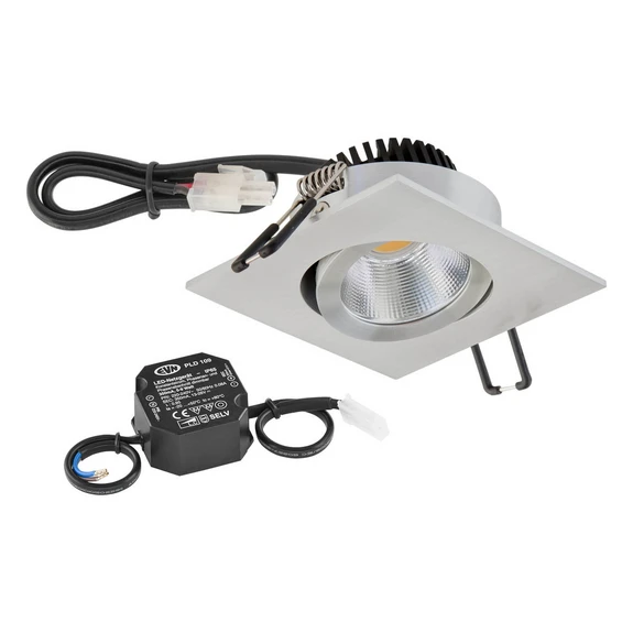 Stūra un grozāmā padziļinājumā iebūvējamā LED gaisma PC20 ar barošanas bloku Padziļinājumā iebūvējamā LED griestu gaisma PC20 ir ne tikai grozāma. Tam ir arī 30 cm garš savienojuma kabelis ar AMP kontaktdakšu, un tas ir piemērots arī mēbeļu konstrukcijām. Jaudīgais COB LED droši nodrošina labu apgaismojumu visā interjerā. Pulverkrāsotais alumīnija korpuss ir glīts un noapaļots ar caurspīdīga stikla paneli. Ideāli piemērots kā prožektors, efekta apgaismojumam vai kā klasisks lejupvērsts gaismeklis, kas izkārtots rindā - piemērots mēbeļu konstrukcijām (ugunsdrošības marķējums MM) - COB LED - ar LED barošanas bloku (savienojuma kabeļa garums 15 cm) - ar priekšējās malas un aizmugurējās malas fāzes dimmera palīdzību - regulējams, izmantojot priekšējās malas un aizmugurējās malas fāzes dimmeri