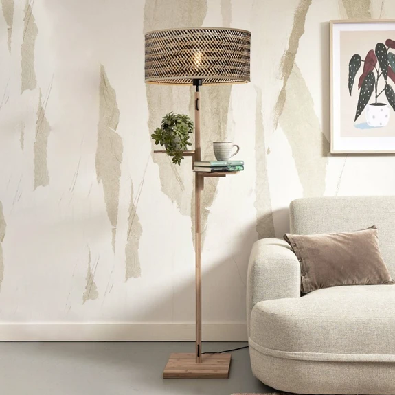 GOOD & MOJO Java stāvlampa, plaukts, dabīga/melna krāsa