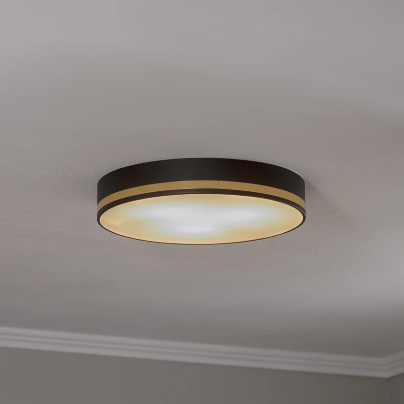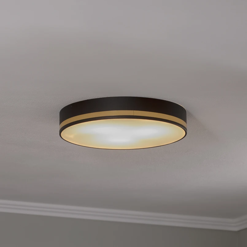 Griestu lampa Amore apvieno mūžīgu eleganci ar moderniem dizaina elementiem. Dziļā melnā krāsa un smalkās zelta strīpas katrai telpai piešķir greznu atmosfēru. Šī lampa ir ne tikai vizuāls akcents, bet arī funkcionāla, pateicoties augstajam IP kodam, kas to padara ideāli piemērotu izmantošanai dažādās dzīvojamās telpās. Rūpīgā apdare un pārdomātais dizains nodrošina vienmērīgu gaismas sadali, kas katru telpu iemērk patīkamā gaismā.