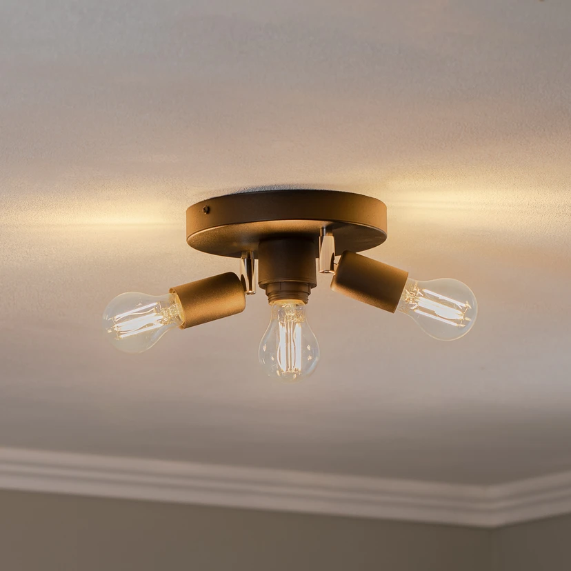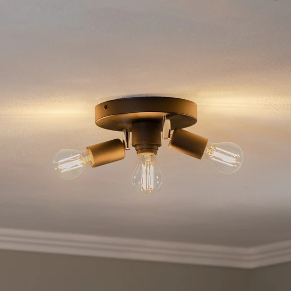 Griestu lampa Centro, melna, 3-deguma, metāla, Ø 19,5 cm