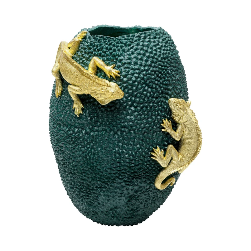 KARE Chameleon Jack Vāze ar augļiem, zaļa/zelta, polirezīns