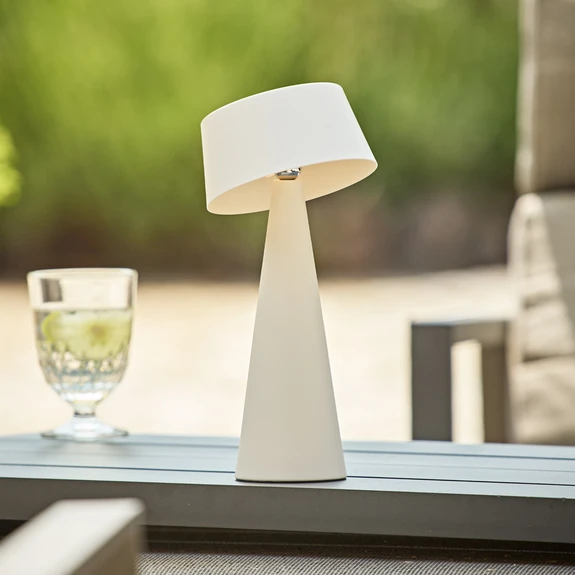 LED akumulatoru galda lampa Solino, balta, saules/USB, 26 cm, IP44