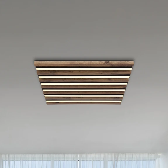 LED griestu lampa Hayden apvieno modernu dizainu ar funkcionālu apgaismojumu un piešķir stilīgu akcentu jebkurai telpai. Izgatavota no augstas kvalitātes materiāliem, piemēram, alumīnija, plastmasas, MDF un metāla, lampa pārsteidz ar eleganto melnā un tumši koka krāsas apdari. Integrētais LED gaismas avots nodrošina enerģijas taupīgu apgaismojumu un patīkamu siltā balta gaismas krāsu 3000 kelvina temperatūrā, kas rada mājīgu atmosfēru.