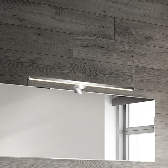 LED spoguļlampa Dun 2 in 1 hromā apvieno modernu dizainu ar elastīgu montāžu. To var piestiprināt tieši pie spoguļa vai ar skrūvēm pie skapja utt. Ar integrētu LED gaismas avotu tā nodrošina vienmērīgu un patīkamu apgaismojumu, kas ir īpaši paredzēts izmantošanai vannas istabā. Siltā balta gaismas krāsa ar 3000 K rada mājīgu atmosfēru.