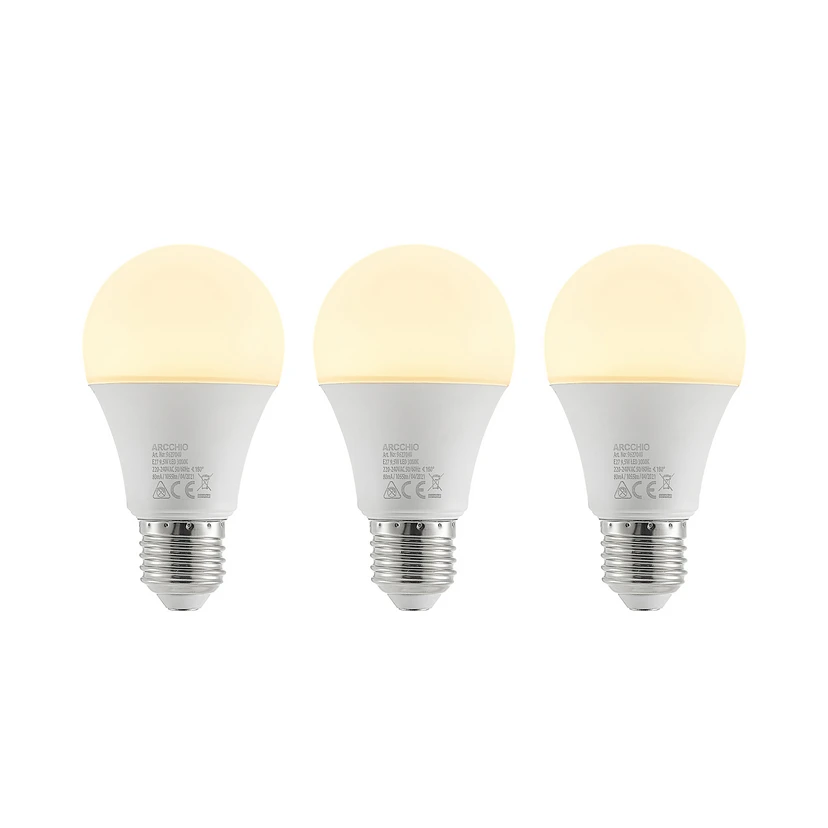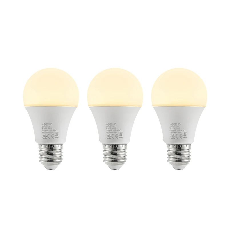 LED spuldze E27 A60 9,5 W, izgatavota no plastmasas, opāla, ar silti baltu gaismas krāsu (3000 K), komplektā 3 gab.Šīs LED spuldzes spilgtums atbilst parastās kvēlspuldzes spilgtumam ar 75 W enerģijas patēriņu, padarot šo gaismas avotu par enerģiju taupošu alternatīvu izmantošanai visdažādākajās telpās - nav regulējams - LED spuldze tiek piegādāta praktiskā komplektā 3 gab