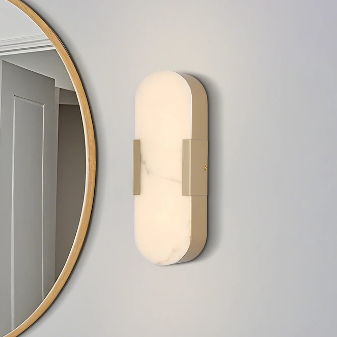 LED vannas istabas sienas lampa Opaline ar mākslīgās sveķu abažūru