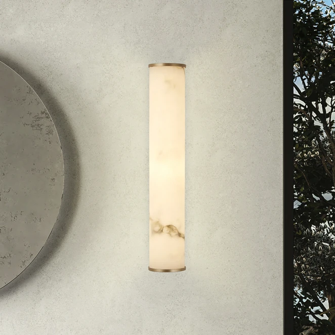 LED vannas istabas sienas lampa Wales, zelta/marmorēta, 35 cm tērauds/sveķi
