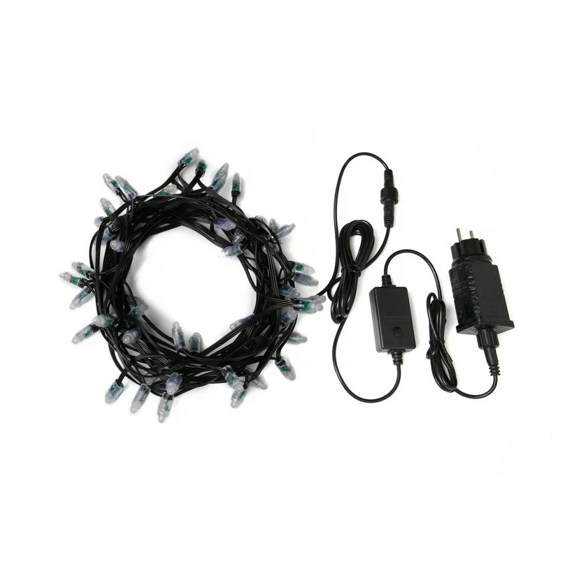 Gudri vadāma Lite Bulb Moments LED gaismas ķēde iekštelpām un āra telpām - 50 spilgtas krāsas diodes Lite Bulb Moments LED gaismas ķēde apbur interjerus, terases un dārzus ar 50 gaismas punktiem, kas var spīdēt spilgtās krāsās, ar jebkuru spilgtumu, gradācijām, izmaiņām un ainām. Ķēde ir aprīkota ar melnu kabeli, un tā ir saderīga ar WLAN, tāpēc to var pieslēgt planšetdatoram/ viedtālrunim, lai to konfigurētu, izmantojot lietotni, un vajadzības gadījumā vadītu ar balss komandu. Komplektā ietilpst strāvas adapteris, kontrolieris un barošanas kabelis - Integrācija, izmantojot WLAN - Vadāma, izmantojot Lite Bulb Moments lietotni (pieejama bez maksas iOS un Android operētājsistēmām) planšetdatorā/ viedtālrunī - Var integrēt Amazon Alexa un Google Assistant balss vadībai - Saderīga ar SmartThings un Siri Shortcuts - Regulējams aptumšojums - Vairāk nekā 16 miljoni krāsu toņu - Iepriekš konfigurētas dinamiskas ainas - Individuālu krāsu kombināciju, ainu un automatizāciju iestatīšana, izmantojot lietotni - Sinhronizācija ar mūziku: krāsaina toņu un ritma vizualizācija - Aizsardzības kategorija: barošanas bloks IP44, gaismas ķēde IP65