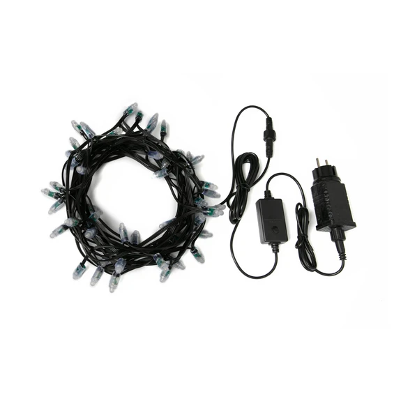 - Ø diodes 0,8 cm; kopējais gaismas ķēdes garums 13 m; barošanas kabeļa garums 3 m