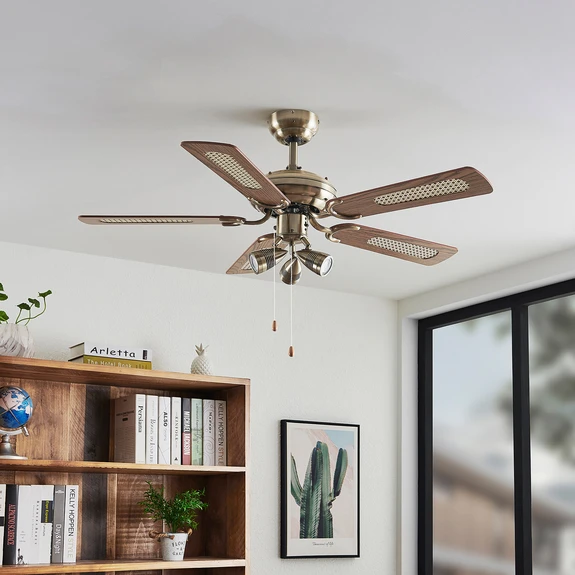 Griestu ventilators Anariki no tērauda un koka, misiņa un tumša koka
