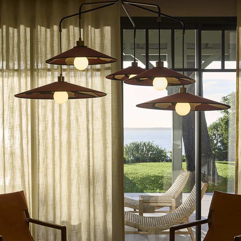 Pateicoties iespējai regulēt gaismas intensitāti ar ārēju dimmeru, lampu var pielāgot gan mājīgai, gan produktīvai atmosfērai. Pieci E27 pārsegi nodrošina elastību gaismas avotu izvēlē un ļauj optimāli izkliedēt gaismu telpā. Acīm tverams dizains, kas apvieno funkcionalitāti un dizainu perfekti līdzsvarotā kombinācijā.