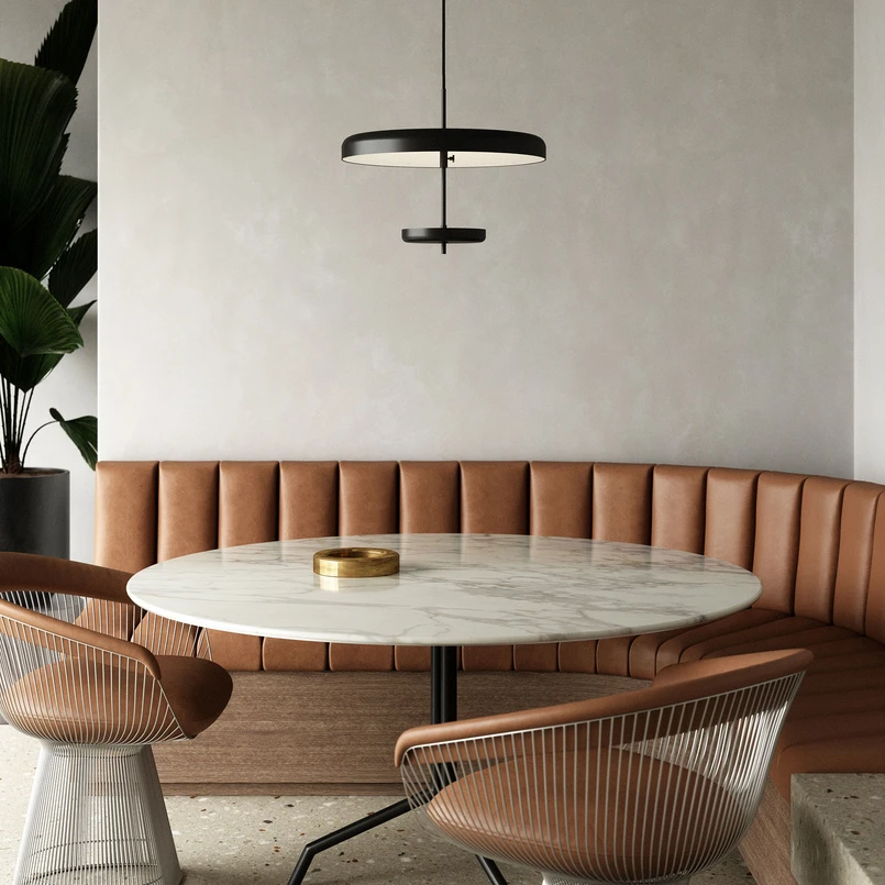 Maria Berntsena (Maria Berntsen) izstrādātais piekaramais gaismeklis "Mobile" Piekaramais gaismeklis "Mobile" centrālais punkts ir divi noapaļoti matēta alumīnija abažūri, kas atšķiras pēc izmēra. Apakšējā korpusā ir trīs ligzdas, kurās ievieto attiecīgos gaismas avotus (nav iekļauti komplektā). Gaisma no apakšas spīd uz lielā abažūra un tiek atstarota uz āru. Tādējādi telpa tiek netieši izgaismota ar neapžilbinošu apgaismojumu. Augšējā korpusa augstumu var regulēt, izmantojot misiņa skrūvi, radot vēl plašāku apgaismojumu, palielinot attālumu līdz gaismas avotam, kas ir ideāli piemērots lietošanai virs ēdamistabas galda vai vispārējam apgaismojumam.