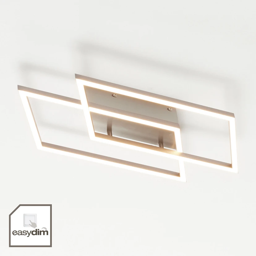 LED griestu lampa Inigo ar diviem taisnstūra formas gaismas elementiem Divu gaismu LED griestu lampa Inigo ne tikai rada ļoti modernu vizuālo efektu, bet arī piedāvā iebūvētu apgaismojuma tehnoloģiju. Mazie gaismas diodes izstaro maigu, silti baltu gaismu, kuras intensitāti var regulēt pēc vajadzības, izmantojot standarta sienas slēdzi. Aprīkots ar atmiņas funkciju: Kad apgaismojums tiek ieslēgts atkārtoti, tiek saglabāts iepriekšējais apgaismojuma iestatījums, tāpēc pēc vēlamā apgaismojuma noskaņojuma iestatīšanas tas vairs nav jāatjauno.