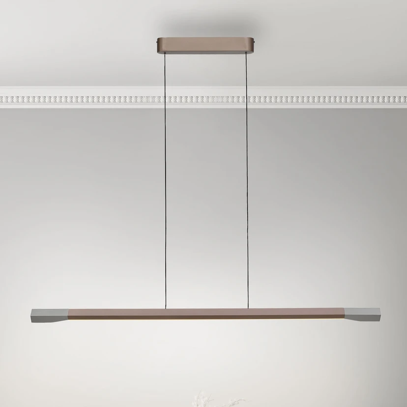 Paul Neuhaus LED piekaramā lampa Hoop, brūna, 128 cm, aptumšojama