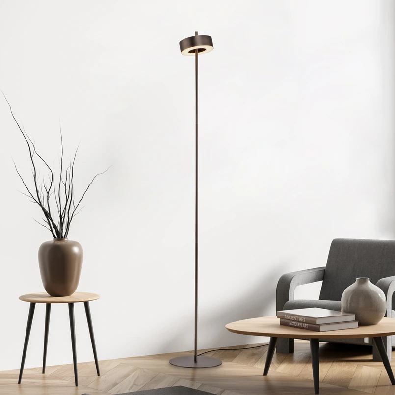 Mūsdienīga Q-Rotate LED stāvlampa ar nolokāmu abažūru - gudra un vadāma ar tālvadības pulti Q-Rotate LED stāvlampa ir gan funkcionāli, gan vizuāli pielāgota laikam. LED modulis atrodas gredzenveida alumīnija abažūrā, kas ir grozāmā veidā piestiprināts pie slaida, vertikāla rāmja stieņa augšdaļas. Gaisma tiek izstarota caur satinizētiem vāciņiem gredzena augšpusē un apakšpusē, un ir iekļauta piemērota Q tālvadības pults, ar kuru var pārslēgt, aptumšot un regulēt krāsas temperatūru. Papildus brīvai gaismas regulēšanai tas piedāvā arī iepriekš konfigurētas opcijas, lai gandrīz jebkurā situācijā būtu ērti pieejams ideāls apgaismojums. Q-Rotate stāvlampu var arī bezvadu režīmā integrēt ZigBee viedā mājas sistēmā (nepieciešams tiltiņš), lai atkarībā no konfigurācijas to varētu vadīt, izmantojot lietotni vai balss komandu.
