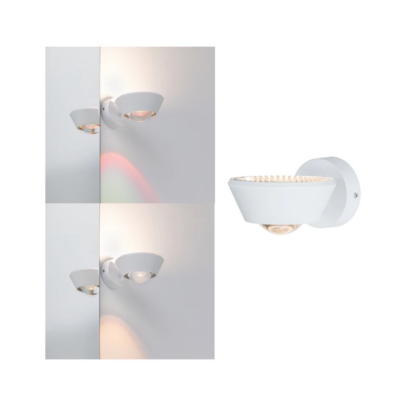 Sabik grozāmā LED sienas lampa Šī LED sienas lampa ir punktveida galva ar LED gaismas avotu, kas izstaro gaismu uz augšu un uz leju. Stikla lēcai ar fiksācijas gredzenu apakšējā daļā var piestiprināt dihroisko plēvi (ietilpst komplektā), kas nodrošina īpašus gaismas akcentus. Prožektoru var pagriezt 180° leņķī, lai, izgaismojot sienu, varētu radīt netiešu apgaismojumu. Pateicoties IP44 aizsardzībai pret šļakatām, šo gaismekli bez problēmām var uzstādīt arī vannas istabā.