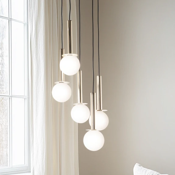 Piekaramais gaismeklis Daisy ar 5 spuldzēm apvieno modernu dizainu un augstas kvalitātes materiālus. Tas ir izgatavots no pulverkrāsota tērauda un stikla un pārsteidz ar eleganto krāsu kombināciju zeltā, baltā un melnā krāsā. Šis gaismeklis ir acu noķērtējs jebkurā ēdamistabā, viesistabā vai priekšnamā un piešķir katrai telpai īpašu atmosfēru. Iespēja regulēt gaismas intensitāti ar ārēju dimmeru nodrošina papildu elastīgumu gaismas dizaina veidošanā.