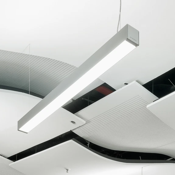 Pagarināts Channel S Up C-LED piekaramais gaismeklis - moderns dizains Channel S Up C-LED piekaramais gaismeklis ļoti efektīvi apgaismo birojus, pieņemšanas telpas un citas telpas, kā arī kalpo kā elegants interjera elements. Ar savu tievo korpusu, kas izgatavots no dabīga anodēta alumīnija, un mikroprizmatisko CLD difuzoru (Controlled Luminance Diffuser), kas izgatavots no satinēta polikarbonāta, tas rada efektīvu, bezēnas un dekoratīvu gaismas līniju ar tiešu (40 %) un netiešu (60 %) apgaismojuma efektu. Arī griesti ir patīkami izgaismoti. Komplektā iekļauts vadības rīks - Regulējams (DALI) - Perfekta atspīduma kontrole standarta prasībām atbilstošam biroja apgaismojumam - Maks. 3 000 cd/m² - Nav redzamu skrūvju - Augsts gaismas plūsmas blīvums: līdz 1 500 lm/m - Triecienizturība: IK08