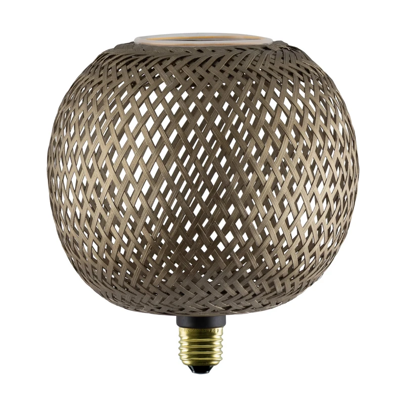 LED globveida spuldze Floating Bambus ar bronzas krāsas pārklājumu ir dimmerējama ar fāžu dimmeru (piemēram, ELTAKO, Jung, GIRA utt.) un pārsteidz ar lielisko izskatu bez abažūriem. Spuldze ar savu dabisko struktūru rada mājīgu un aicinošu atmosfēru. Šo efektu vienlīdz veicina gaismas laušana caur bambusa pīto atvērumiem un estētiskais dizains.