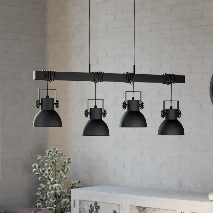 Shirebrook piekaramais gaismeklis, četru gaismu, melns