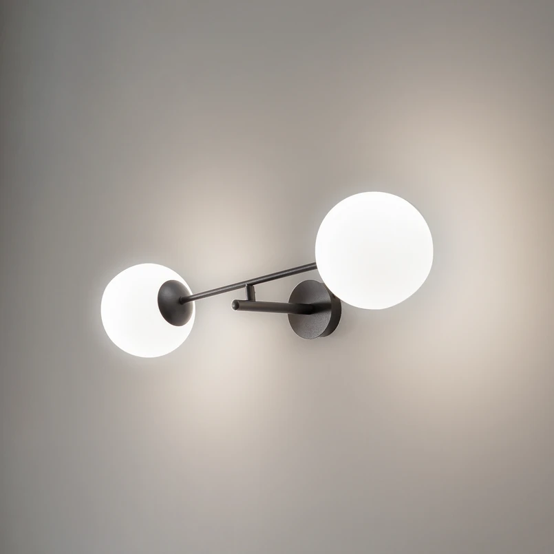 Sienas lampa Linear, melna/opāla, divu gaismas avotu