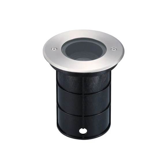 Iebūvējamais LED padziļinājumā iebūvējamais grīdas gaismeklis Interrata Apaļais padziļinājumā iebūvējamais grīdas gaismeklis Interrata ar +/-30° regulējamu gaismas moduli var tikt iebūvēts spiedienam līdz 2000 kg (20 kN) un ir aprīkots ar 2 m 3x1 mm2 lidojošo vadu un instalācijas cauruli, alumīnija korpusu ar nerūsējošā tērauda (SS316) apdares gredzenu un caurspīdīga stikla difuzoru - bez apgaismojuma